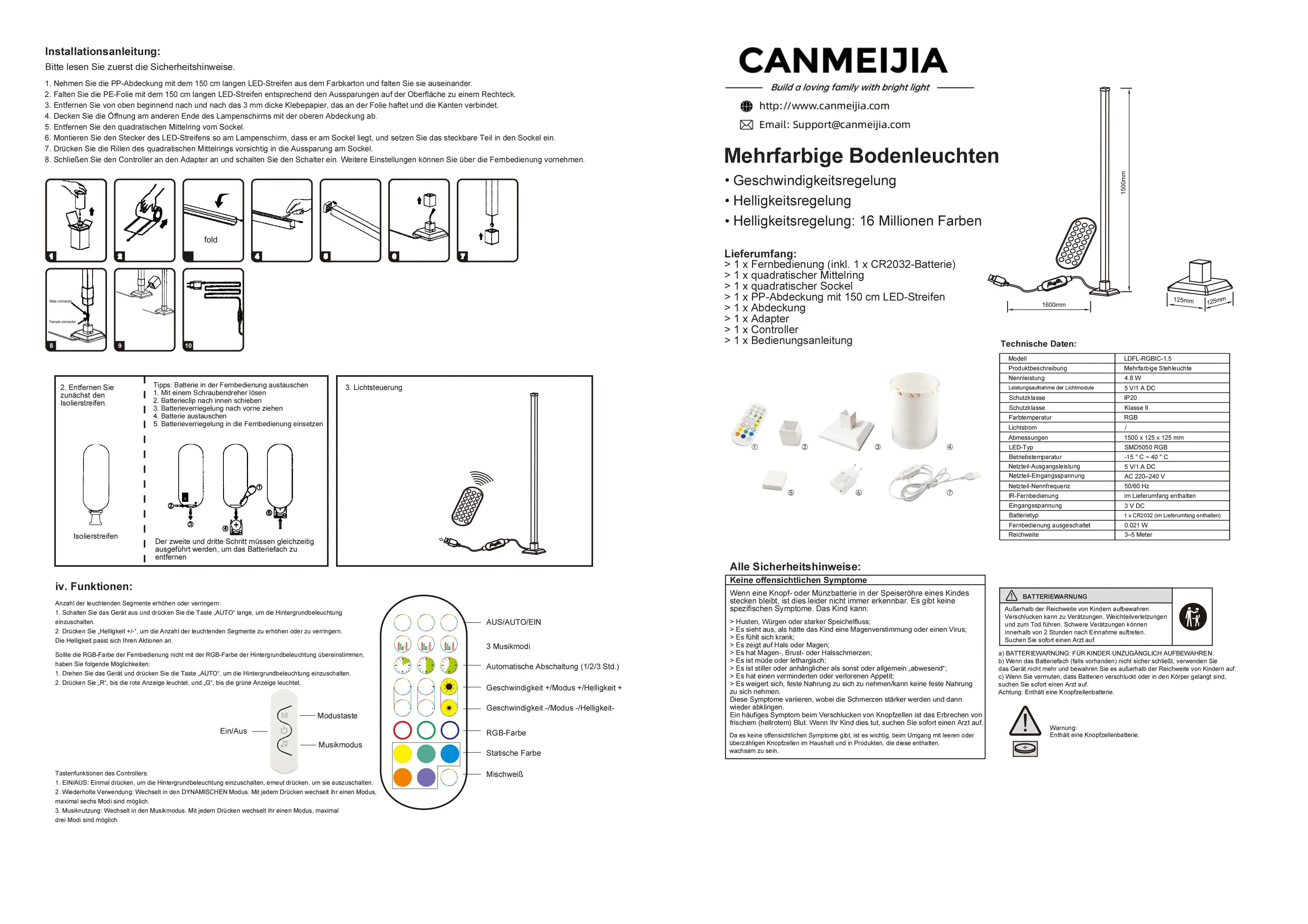- Carefully unpack the LED RGB Tower Light and lay out all components, including the tower, base, and remote control.