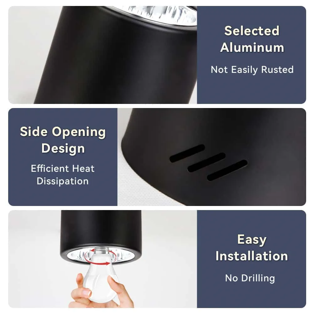 No drilling, no hassle—just twist and mount for a 3-minute instant upgrade. Universal E27 socket lets you swap bulbs at will, saving you money and effort,Clean aluminum profile blends into any décor, from loft to luxury hotel