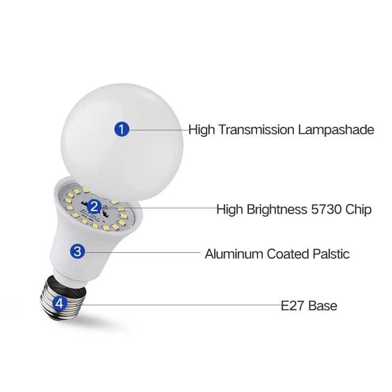 5730 high-brightness chips wrapped in aluminum-coated plastic deliver 3× more light and 2× longer life. Standard E27 base—twist in and light up the whole room instantly