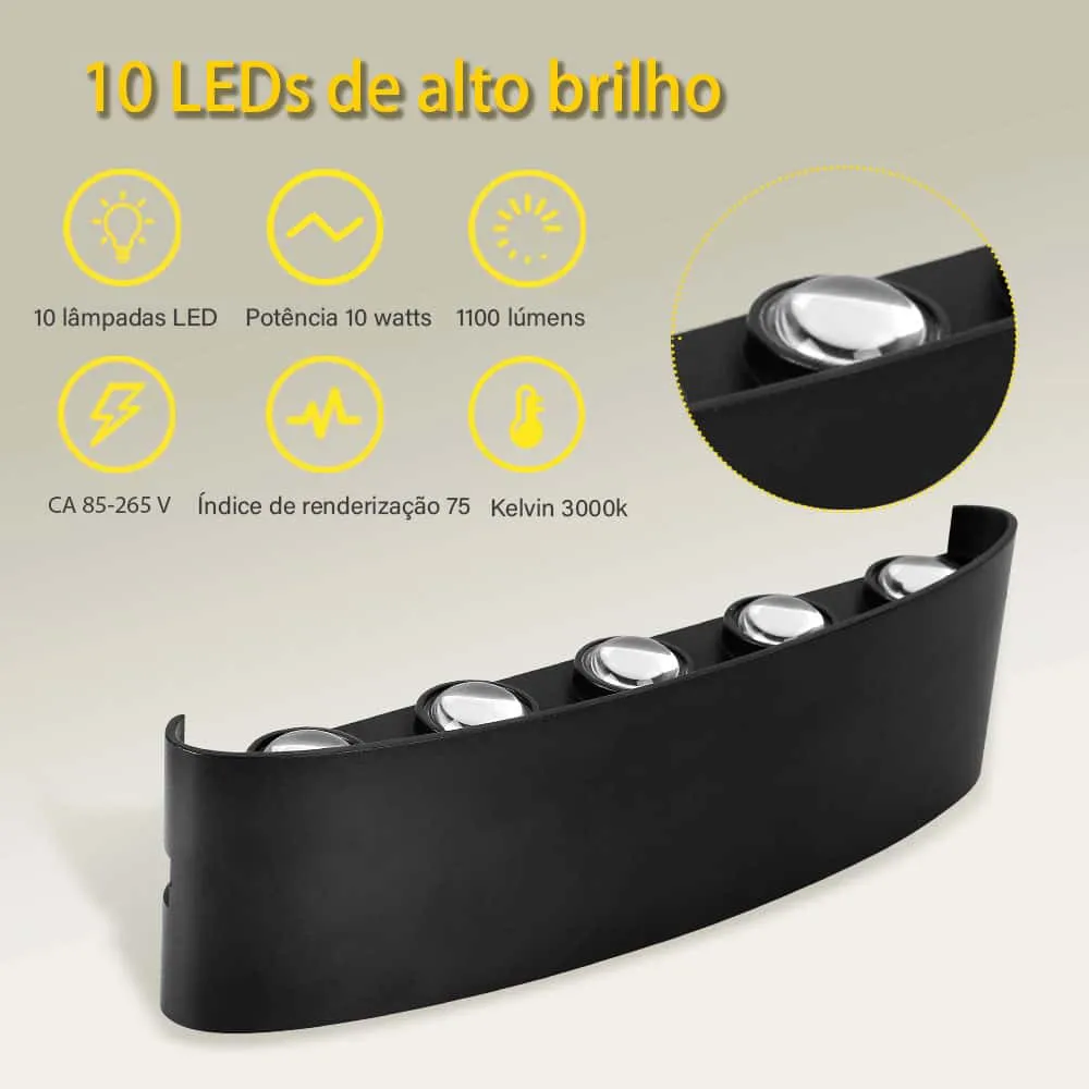 10 LEDs de alto brilho, 10 W e 1 100 lm que substituem halógenas de 60 W.